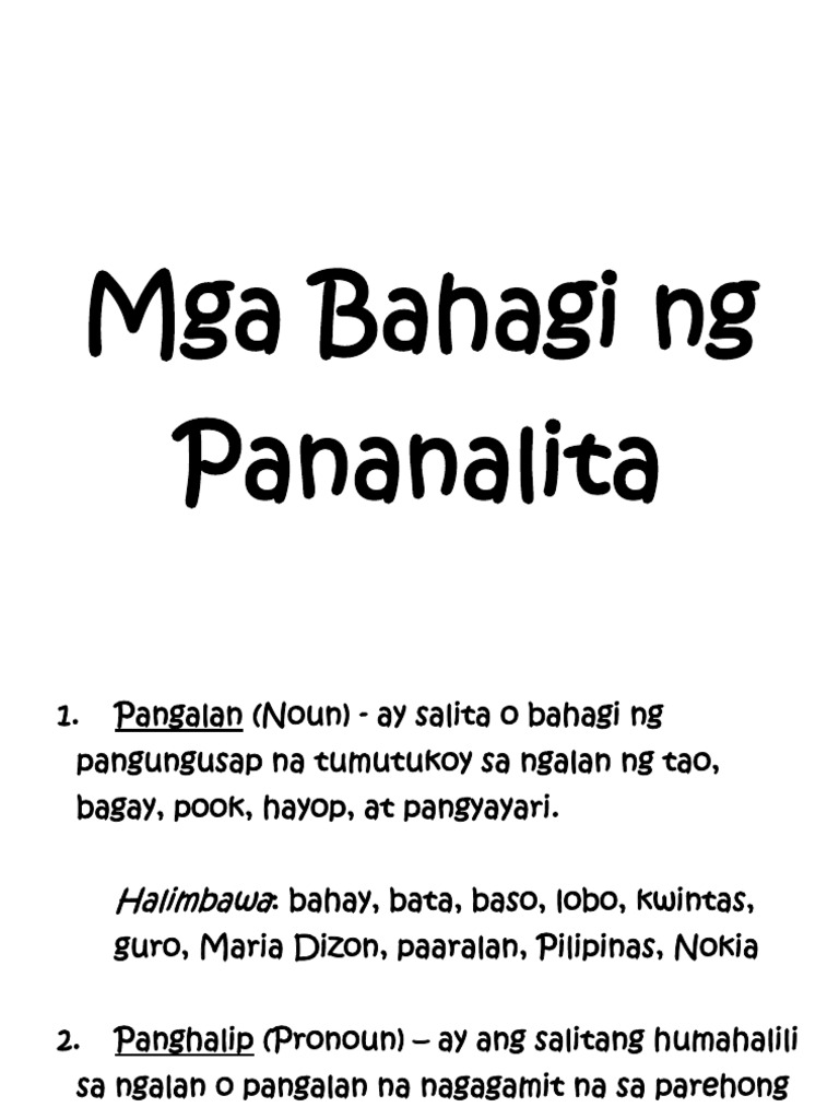 Mga bahagi ng pananalita parts of speech. In english, the main parts of speech are noun, pronoun, adjective, determiner, verb, adverb, preposition, conjunction. Pangngalan ang pangngalan ay salitang tinutukoy ang ngalan ng tao, bagay, pook, hayop o pangyayari. Narito ang mga bahagi ng pananalita at ang kanilang mga halimbawa: 8 bahagi ng pananalita & kanilang mga kahulugan at halimbawa. Ang bibliya—aklat ng mapananaligang mga hula—bahagi 6. What is a part of speech? 71%(7)71% found this document useful (7 votes). Play this game to review other. Printable, resources, free, download, pictures, images, im's, lesson, school, instructional materials, kids. Ang mga bahagi ng pananalita ay panngalan, panghalip, pandiwa, pangatnig. Pero nagulat ang lahat nang sumiklab ang digmaang pandaigdig i at magsimula ang isang panahon. Mga bahagi ng pananalita i.